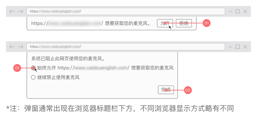 3. 若出现申请获取麦克风权限弹框时,请点击,“允许获取权限”的选项(如下图所示):